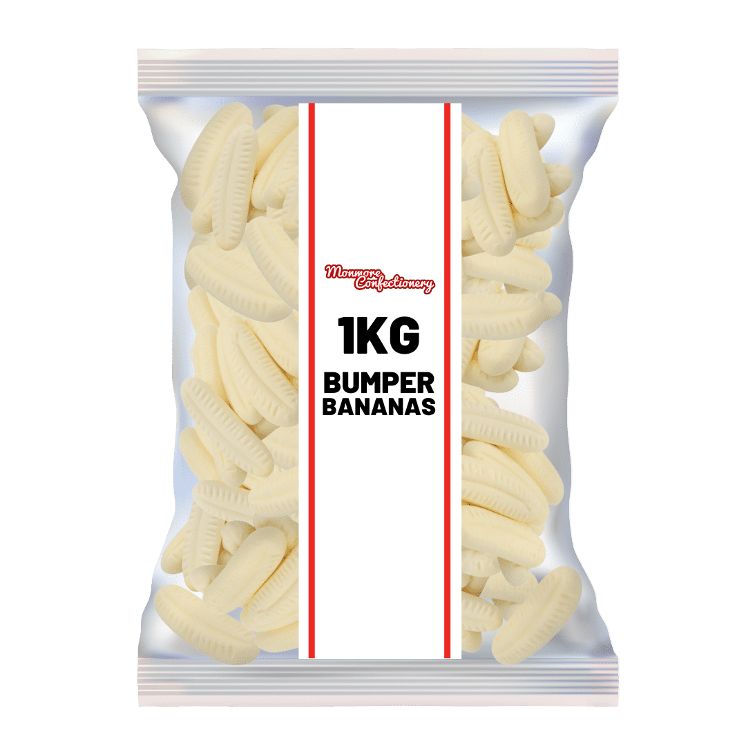 Traditional foam banana flavoured sweets in the shape of a banana. 1kg
