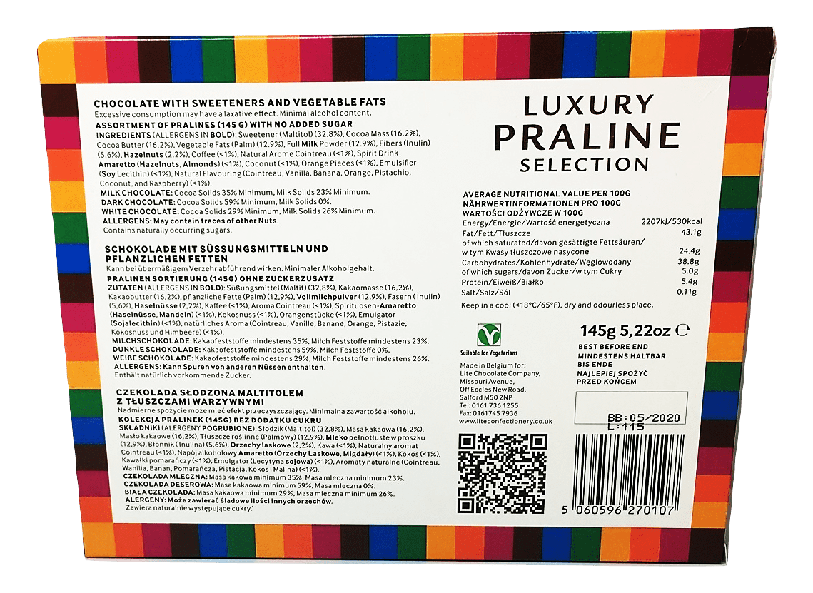 BELGIAN LITE CHOCOLATE BOX 10 x 145g
