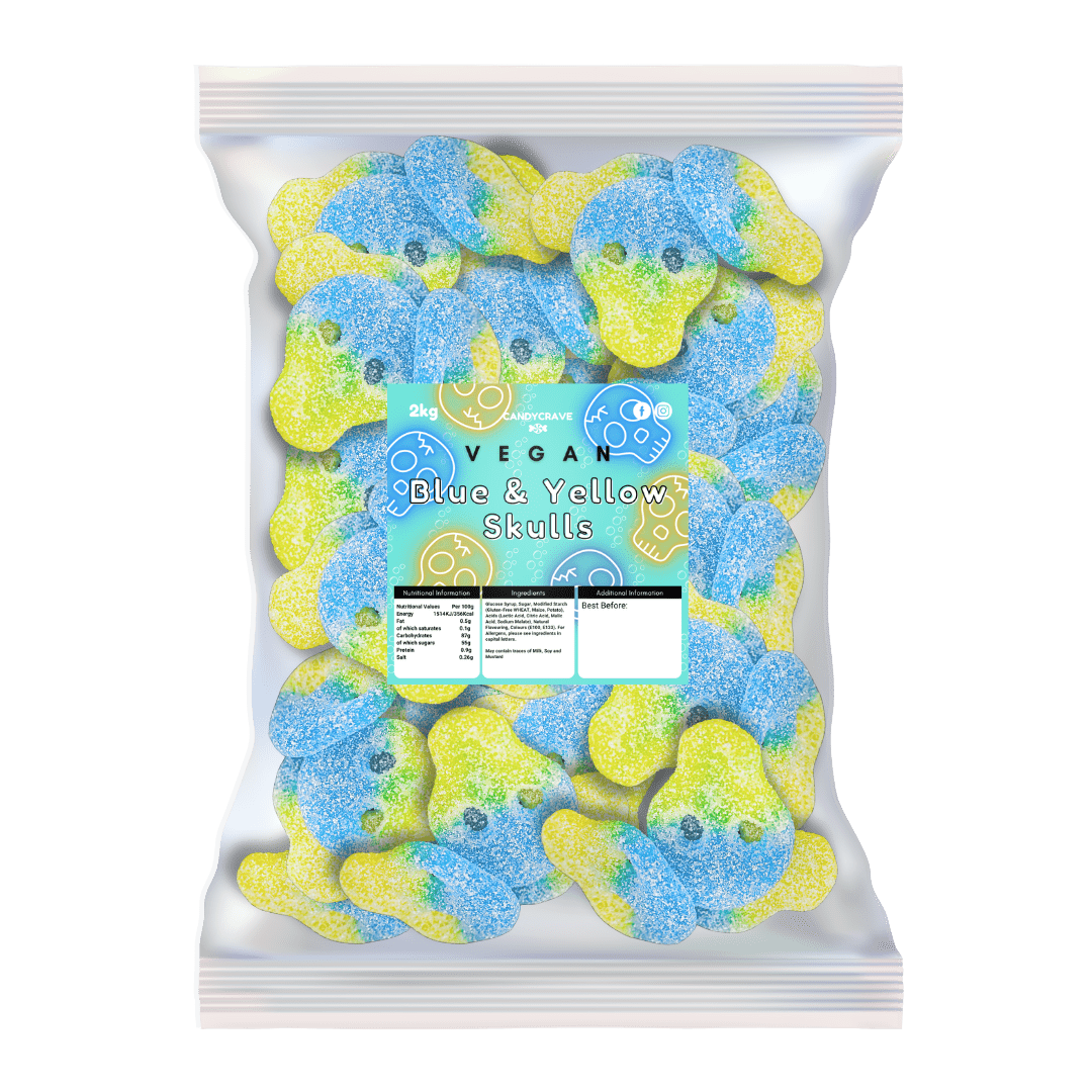 Buy Candycrave Vegan Blue and Yellow Skulls in bulk from Kandy King — your reliable UK supplier for wholesale sweets and bulk confectionery. Order online today for fast UK delivery and bring some fizzy, fruity attitude to your sweet range!